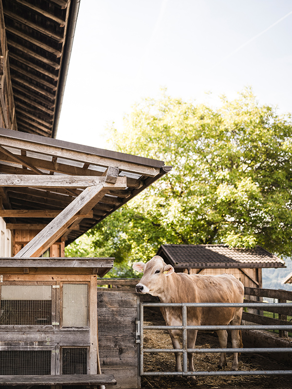 Cows, calves, rabbits, chickens, cats, goats, and our farm dog Sally – who particularly delight children. Here you can experience firsthand how milk is produced, cows are milked, and how life on the farm works. An experience for the whole family!